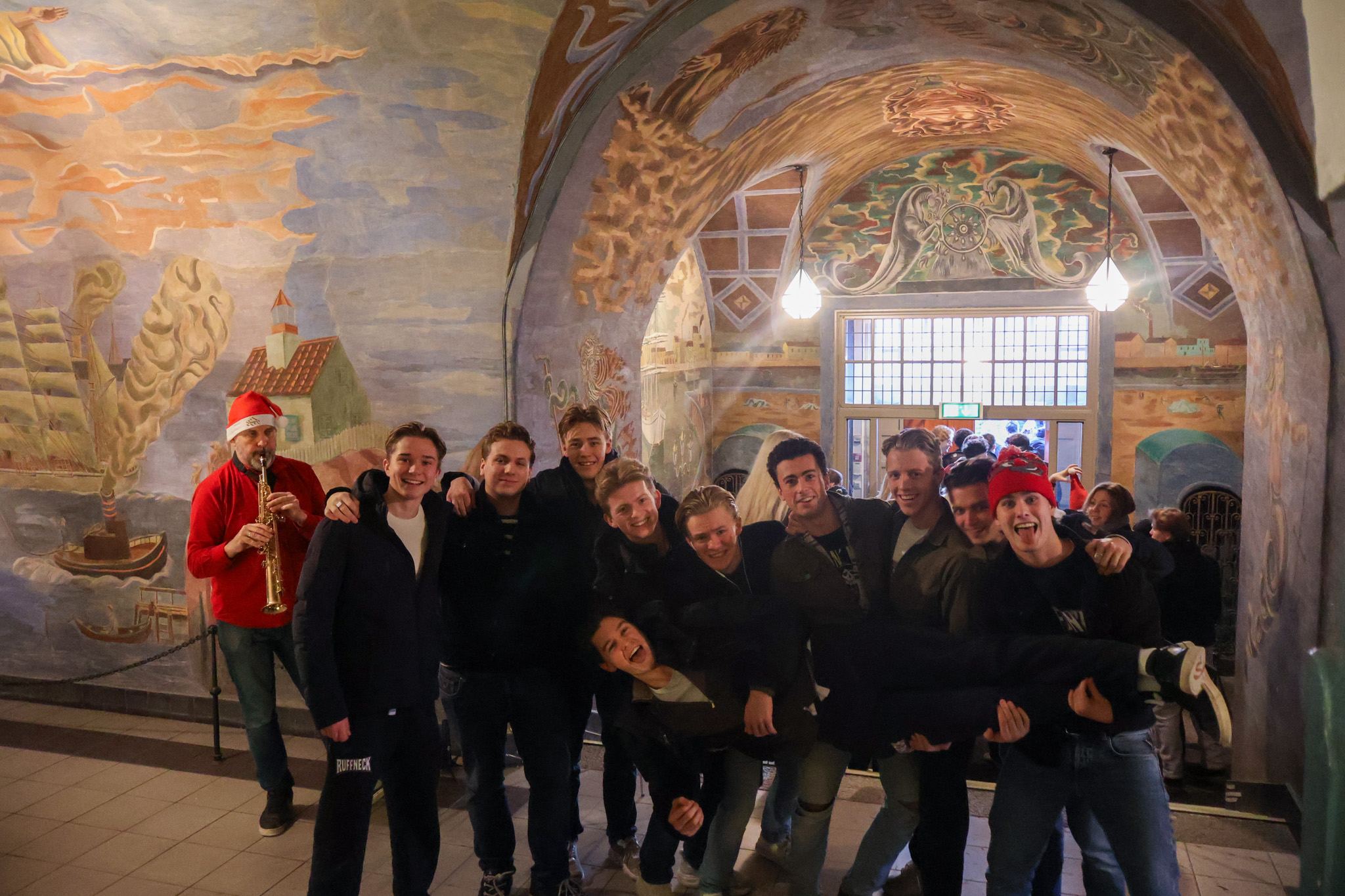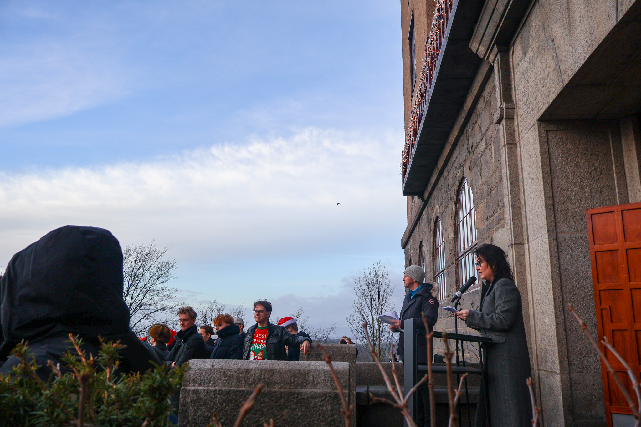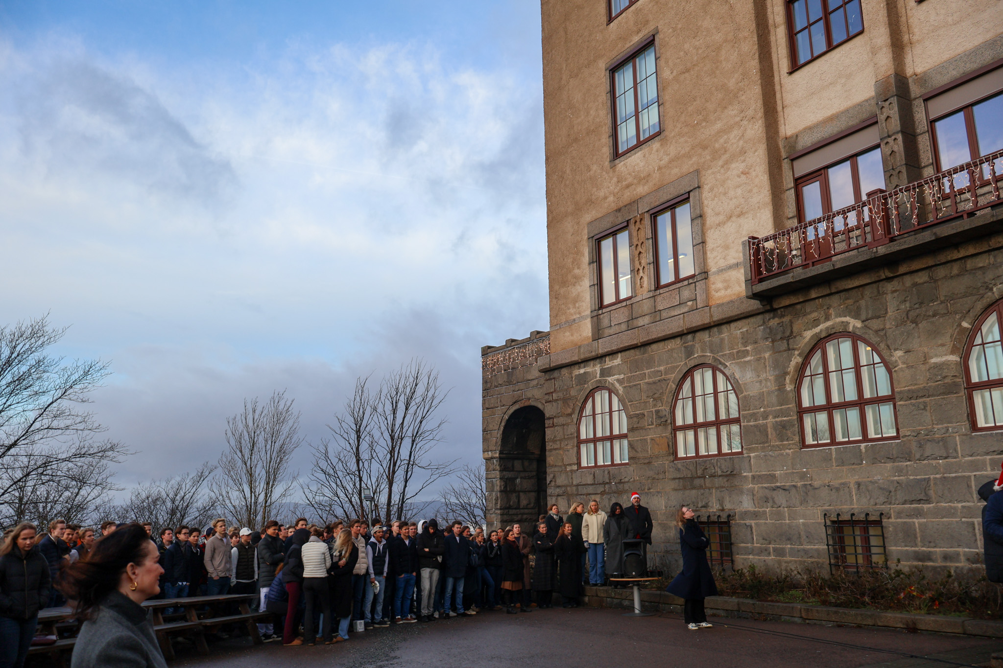 Det blåste friskt i skolegården siste skoledag før jul, men med litt støtte sto juletreet, og det ble en fin juleavslutning i år også. Rektor holdt tale, revysjefene leste et dikt og et utdrag av juleevangeliet. Kongshavns eget julekor sang julesanger mens hele skolen gikk rundt treet.